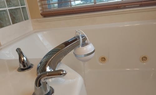 The SoftHue filter attaches easily to your faucet, removing impurities and infusing your bathwater with beneficial minerals for softer skin.