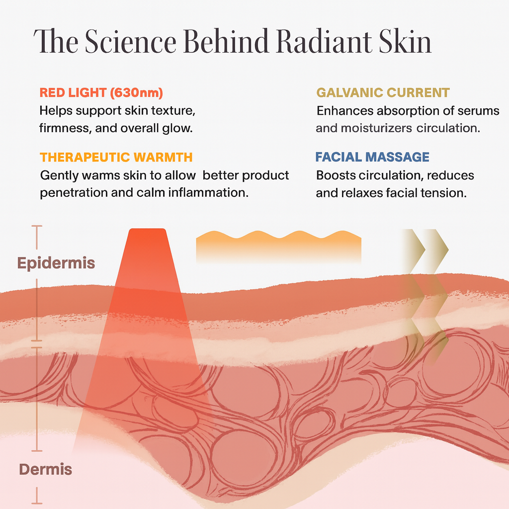 “Red light supports mitochondrial pathways and helps reduce temporary inflammation while promoting healthy glow.”